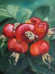 2004Rozenbottels, oogst van een warme zomer Olie op papier Lijstformaat 50 x 40 cm